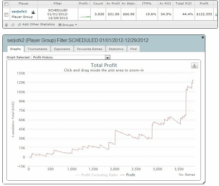 В покерном плане год вышел просто замечательным. В отличие от 2011 я был достаточно фартожоп в мажорах и на сериях, так что выполнил поставленный больше для мотивации годовой план по профиту, дошел до игры от себя на аби 90-100, прилично поездил в офф (поездил всех в оффе тоже ) и перезнакомился с кучей покеристов (ребята, вы о%#енные))). Самые яркие впечатления (да и во всей покерной карьере вообще) пришлись на конец года – доезд в УРТ баттле и победа во фтопсе. Из негатива: почти критическая просадка банкролла с мая по август + траты в оффе + неудачно на ЕПТ съездил с большой долей от себя, в общем не самый лучший период был... что еще плохо, частенько неделями не вылазил из-за компа, не сдал на права, так и не занялся толком спортом :(, недостаточно поездил по миру (чем я, наверное, и займусь в 2013 году в «несезон» для онлайн-катки: в промежуток от скупов до вкупов).